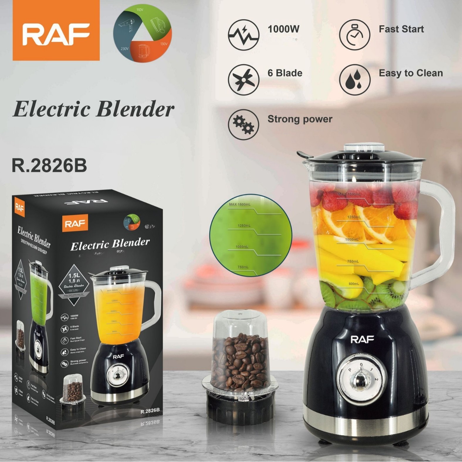 Стационарный блендер с кофемолкой и стеклянной чашей, 1000 Вт