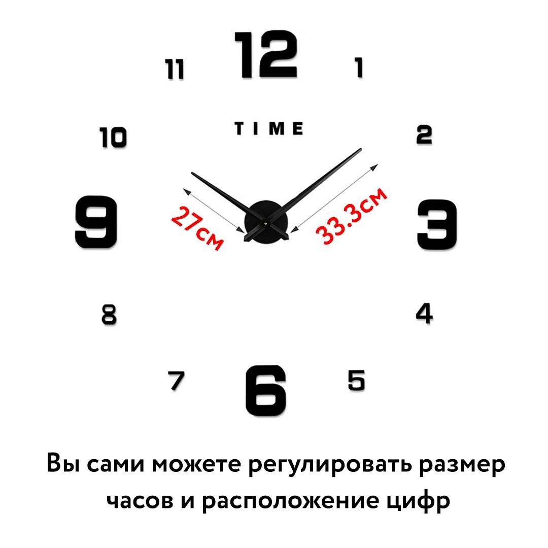 Главная особенность этих часов - регулируемый размер от 60 до 90 см в диаметре. Благодаря этому вы сможете подобрать индивидуальный размер именно под свой интерьер. Часы 3D часы дополняют интерьер, не перегружая его лишними деталями, они вписываются в уже существующую обстановку и подчеркивают ее лучшие стороны.